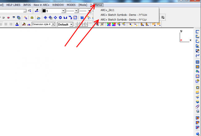 6. על מנת לחזור אל התפריטים הרגילים של התוכנה יש לשוב אל תפריט Menus ולבחור ARC+_2k11.