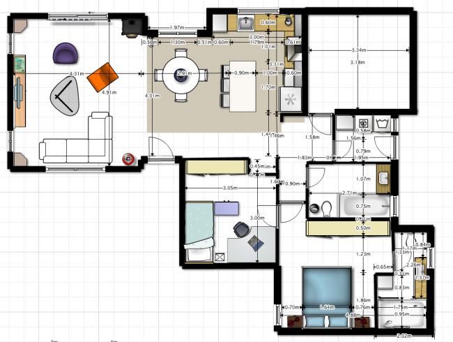 השרטוט חלקי ולא רואים את מבנה הדירה. כמו כן לא ידועה הפרוגרמה (מי גר שם, מהם הצרכים ועוד). עם כל המידע החסר אני רואה כמה בעיות בתכנון, קצת קשה להשיב על הכל במלל אז ממש על קצה המזלג: