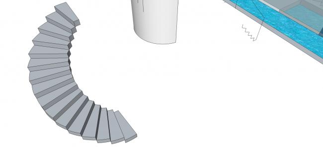 1. שרטטי קו רגיל עומד ממרכז הקשת החיצונית של המדרגה לגובה 105 ס"מ (או כל גובה שתבחרי)