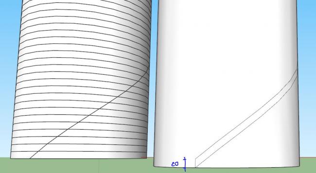 משרטטים גליל שלם וזורקים עליו את הקו הספירלי שנוצר