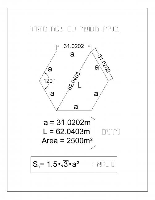 הנוסחה שגיליתי לסוגיה הנ"ל רשומה בתחתית התמונה וזה רק עבור שטח משושה (כשידוע אורך צלע a).