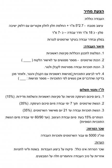 היקף העבודה תלוי בך וברצון הלקוחות. אני מאמינה שפרויקט טוב זקוק לליווי מלא הכולל פגישה עם בעלי מקצוע ופיקוח עליון , אך הכל תלוי כמובן בתקציב.