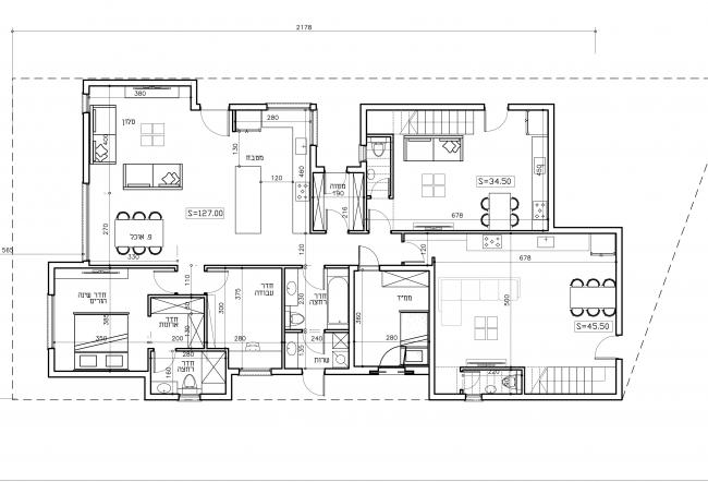מתוך ה - 290 מ"ר מותר לבנות על הקרקע רק 206 מטר השאר קומה שניה