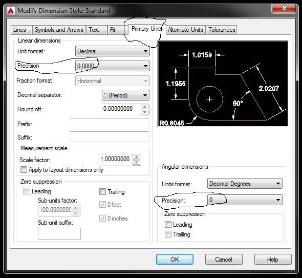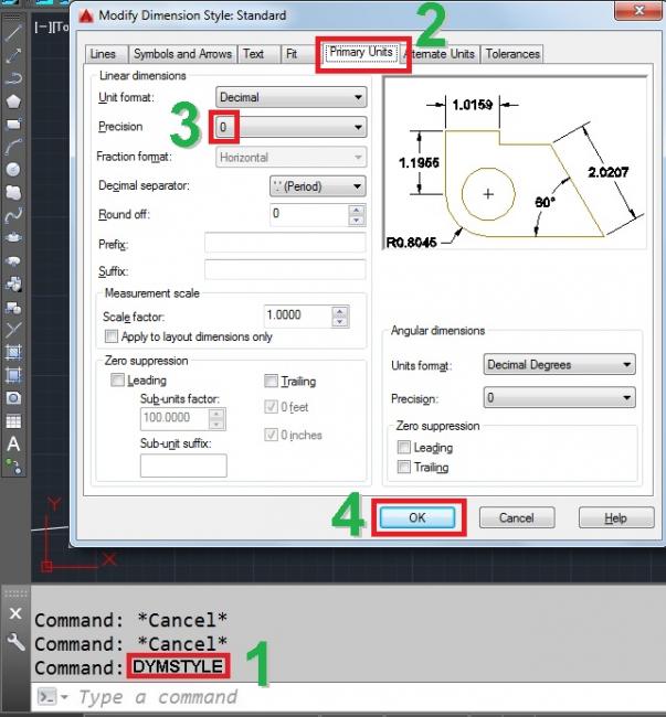 אפשר לעגל מידה בחלון של DIMSTYLE (ראה תמונה)