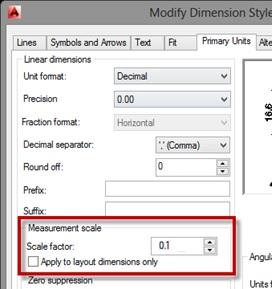 אפשר לנסות לשנות SCALE FACTOR של DIMSTYLE ל 0.1