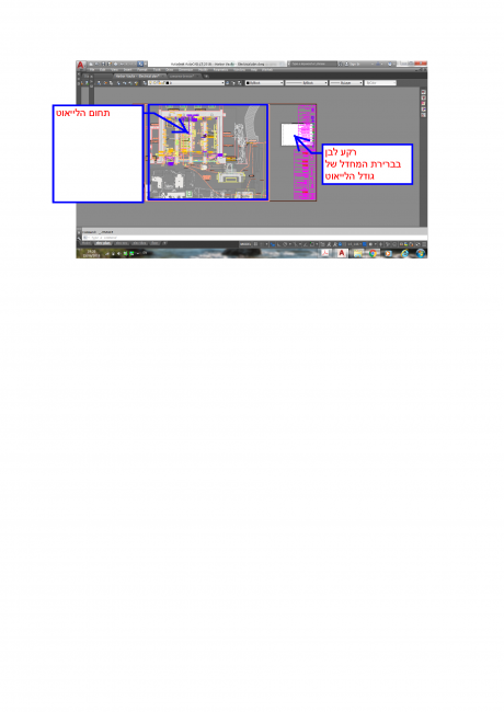 יופיע עכשיו דף במילימטרים אמיתיים (ב-1:1) עליו אתה משרטט את מה ששיך לנייר ובו אתה יוצר את ה-Viewports שמסתכלים על המודל