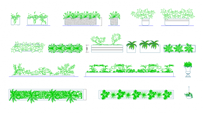 הצמחים כוללים : עצים גדולים וקטנים. צמחים קטנים ופרחים שנמצאים בתוך עץיץים בגדלים שונים