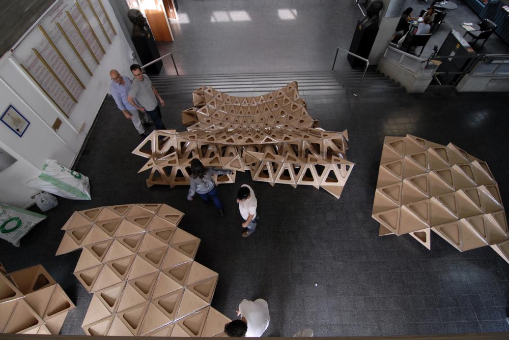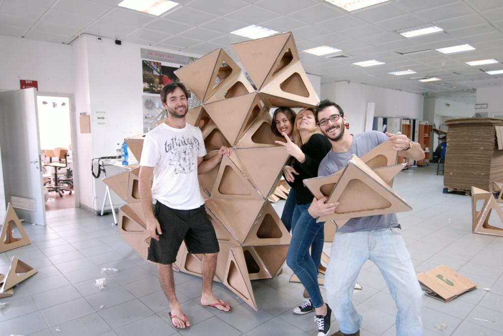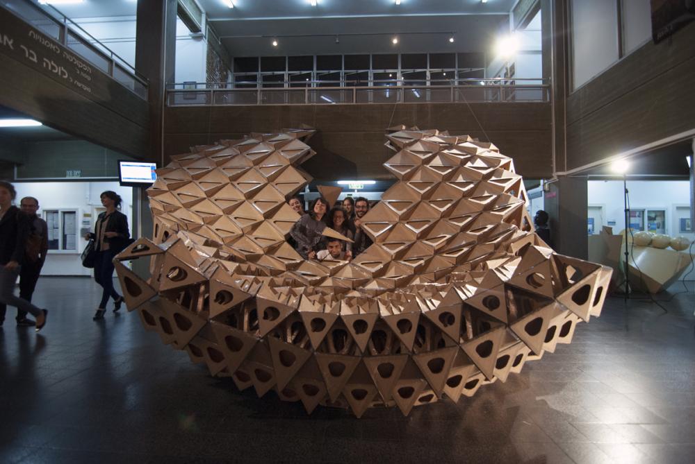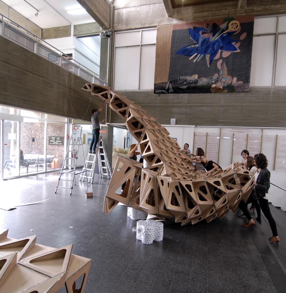 ד עזריאלי. הוא מורכב מ-700 יחידות שונות עשויות קרטון, אשר הרכבתן אפשרית אך ורק בצורה אחת ליצירת צורה יציבה סטרקטורלית. כל שורה במבנה מורכבת משני טיפוסים של פירמידות, עליונה ותחתונה.לצפייה בסרטון ההקמה לחצו כאן - מומלץ!