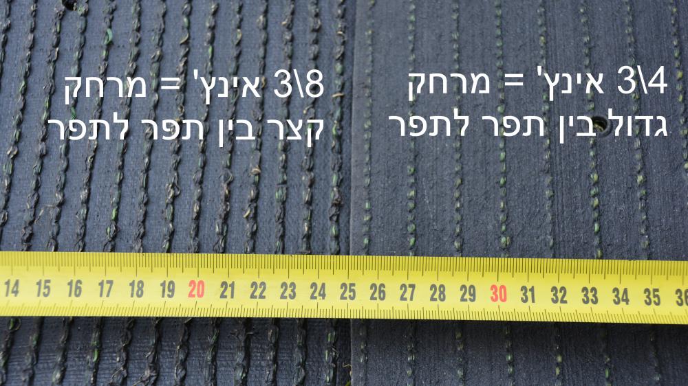 כל אינץ' שווה 2.54 ס"מ. למשל: דשא סינטטי שמרחק התפרים שלו הוא 43 אינץ' אז המרחק בין תפר לתפר הוא 1.9 ס"מ. ב-83 אינץ' המרחק בין התפרים הוא 0.95 ס"מ.