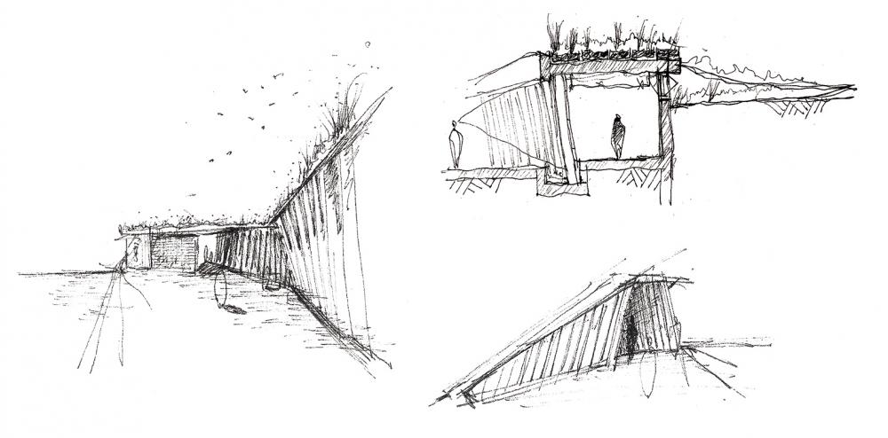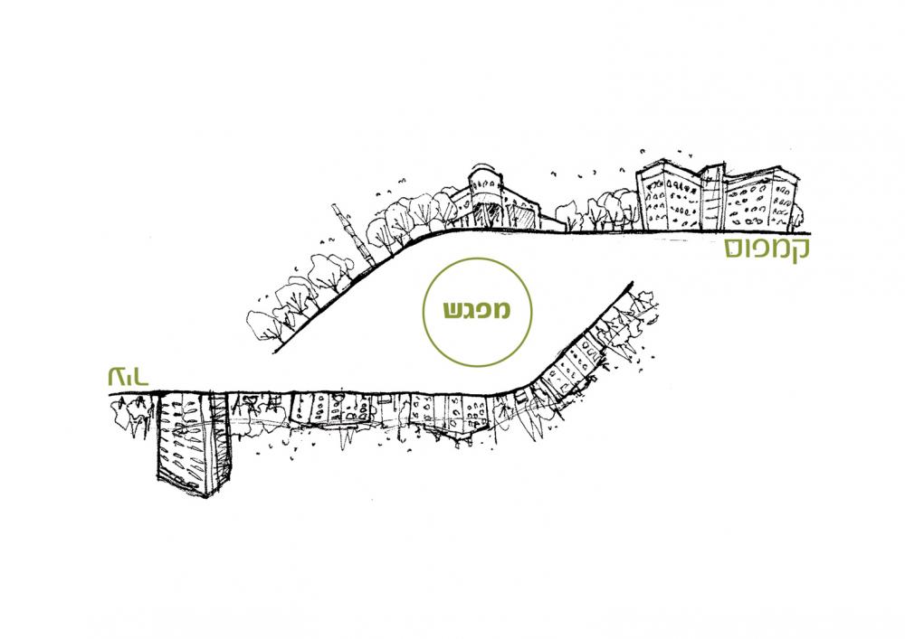 שימוש בקפל הקרקע מייצר דופן למרחב אשר הינה מהווה פלטפורמה לפרסום תכנים שונים והצגת תערוכות מתחלפות. מרחב זה העשיר התכנים, עשוי לחזק את הקשר בין מוסד הטכניון והשכונות הסובבות אותו.