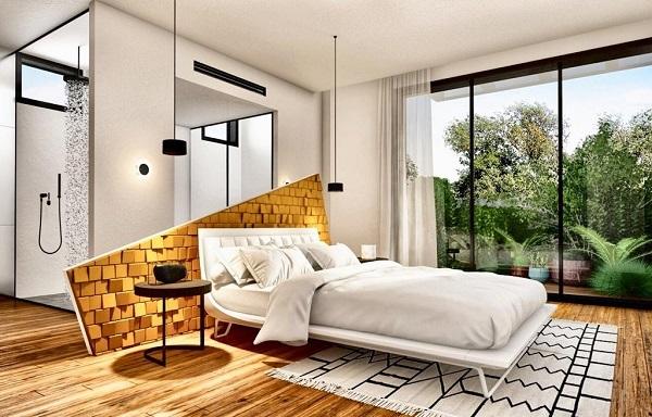 סוויטת ההורים משדרת פתיחות עם ריהוט מרחף וגופי תאורה תלויים. קיר גב המיטה עוצב ונבנה בצורה לא שגרתית ושבר מוסכמות בחדר השינה. קיר גב המיטה נבנה בצורה כזו שהוא לא חוסם את חלל חדר השינה מכל כיוון וכך צורתו וחיפוי התלת מימד עליו יצרו עניין וסקרנות . על רצפת הסוויטה הונח פרקט עץ לחימום האווירה .