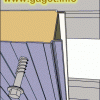 פרט חתך אופקי בחלון בקיר פנל מבודד. הפרט מציג את הפלשונג הסוגר את הקיר אל חלון האלומיניום. החלון מותקן על משקוף עיוור מפח שמותקן על הפנל המבודד החתוך.
