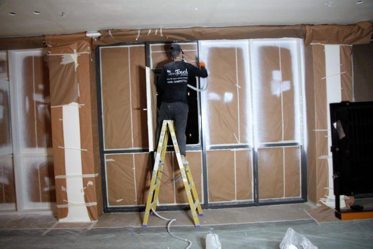 תהליך העבודה של צביעת חלונות בהתזה בבית הלקוח