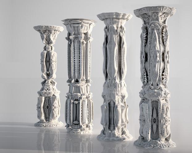 כתבה מקסימה ב Xnet מציגה את עבודתו של האדריכל השויצרי מיכאל הנסמאייר. הנדסמאייר מזין שיטות חישוב וצורות לתוך מחשב ומקבל בצד השני אדריכלות שתוכננה בלעדיו. צורת העבודה הזו מאפשרת יצירתם של אלמנטים הנראים כאורגניים. בתמונות כאן נראית התוצאה של הזנת עמודים בסגנון דורי למחשב ומשם פשוט "נותנים לנוסחה לרוץ". כל עמוד הוא יחודי והאורנומנטיקה מהפנטת.