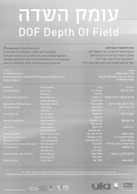 התערוכה עומק השדה DOF: ארכיטקטורה מצולמת במונחים של עירוניות, אור וקונפליקט היא שיתוף פעולה של אדריכלים וצלמים, להתבוננות על הרעיון האדריכלי והעימות שבינו לבין הפרויקט האדריכלי.