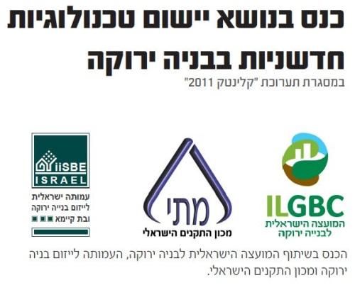 ביום שלישי, 5 יולי 2011, בין השעות 17:00-12:00 יתקיים במסגרת תערוכת "קלינטק 2011" כנס בשיתוף המועצה הישראלית לבניה ירוקה, העמותה לייזום בניה ירוקה ומכון התקנים הישראלי בנושא "יישום טכנולוגיות חדשניות בבניה ירוקה".