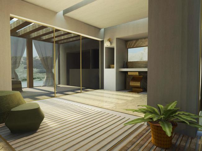 * התמונה - יעל טולדנו, המכון הטכנולוגי בחולון. כפר נופש מדברי המבוסס על אשקוביות בטון (הדמייה)