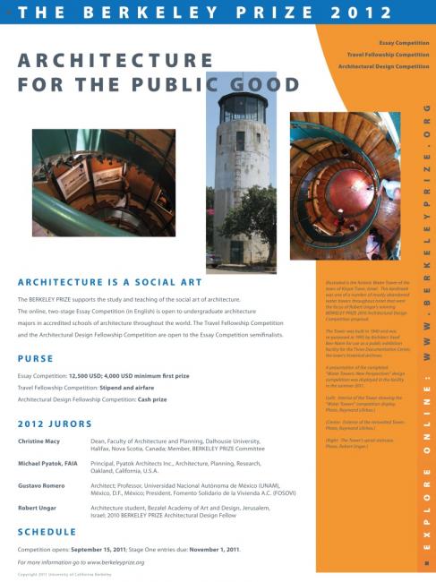 אוניברסיטת ברקלי בקליפורניה מעניקה את פרס ברקלי לעבודות סטודנטים לתואר ראשון בארכיטקטורה, בנושאים של אדריכלות חברתית. התחרות מורכבת משני שלבים בהם נדרש להגיש מאמר ברשת (בשלב ראשון 500 מ