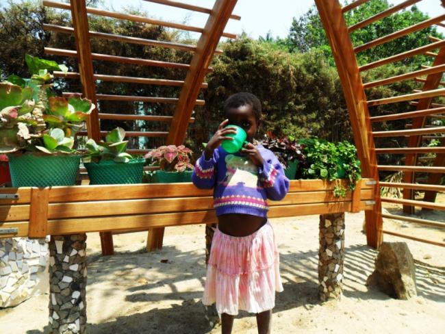 ייעוד נוסף לגן הינו הפיכתו למחסום טבעי ליתושים, הנושאים את מגיפת המלריה השכיחה מאוד באנגולה. באמצעות שתילת צמחים מיוחדים וארומתרפיים בעליי יכולת לדחיית יתושים, מסייע הגן לטפל בחדירת יתושים מהחזית המזרחית של בית היתומים.