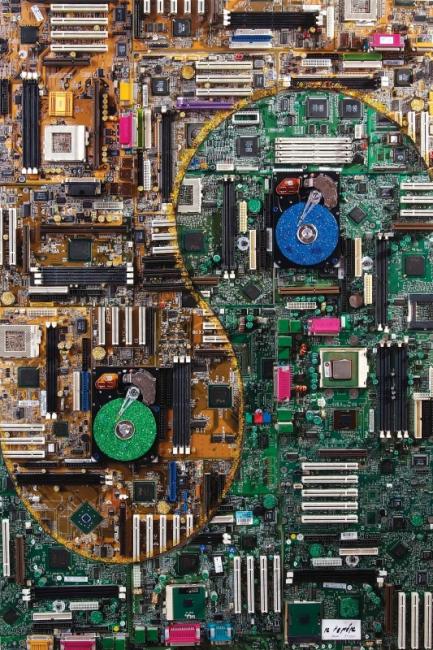 האחת – אסמבלאז' - רכיבי מחשב המייצרים תמונות נוף אורבאניות - המיזוג בין החומרים הלקוחים מעולם המחשוב, תוך כדי שילוב של צורות וצבעים ככתב חידה, מנציח עולם המשתנה בתדירות הקצב הטכנולוגי המהיר. מארזי מחשב פורקו ליחידות המרכיבות אותם: ספקים, כבלים, טרנזיסטורים, לוחות אם צבעוניים ומאווררים. אלה הורכבו מחדש על גבי משטחי אלומיניום גדולים לתוך "שדה" צבעוני טקסטוראלי ומייצרות תמונות נוף גדולות הנקראות כמפות אורבאניות של ממשות.