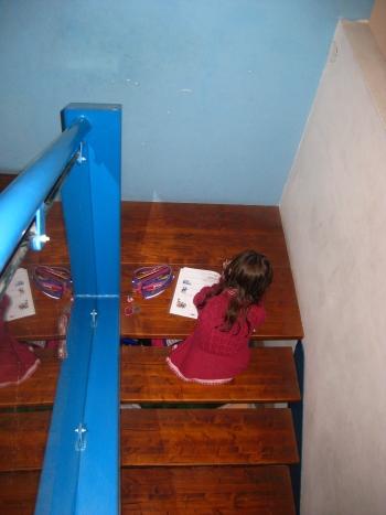האדריכל איתי הורוביץ מציג את הבת שלו שמתעקשת לעשות שיעורים דווקא במדרגות. "כנראה שזה די נוח, במי