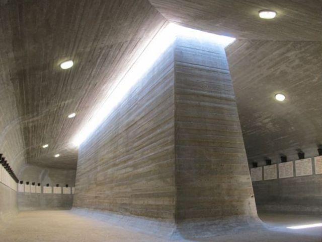 והרוחב המצורפים לכתבה מוסיפים לרושם המתקבל מהתמונות ומראיין גם את מי שעבד עם ברוקוס, האדריכל נחום מלצר שאומר: "המבנה מדבר בעד עצמו. למבנה צורת צוללת, מסלול הירידה הוא טקסי ולבסוף באולם התת-קרקעי כניסת האור מתבצעת מבעד לחריץ דק בתקרה. יש כאן אזכור למבני קבורה עתיקים כמו קבר אגממנון במיקנה שבדרום יוון. יש כאן איזכור למהלך הירידה והכניסה למבנה אבל ובמקביל אזכור פורמלי של צוללת מתחת לפני הים, אלא שכאן זה מתחת לאדמה".*התמונה מתוך הבלוג.