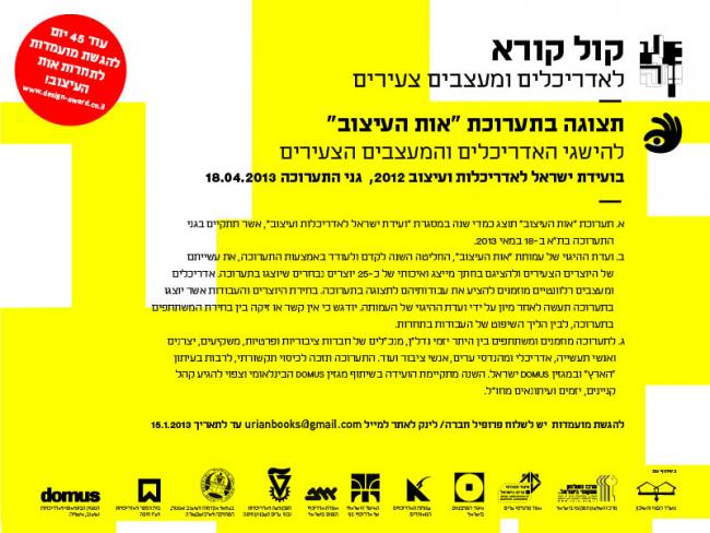 תערוכת "אות העיצוב" תוצג כמדי שנה במסגרת "ועידת ישראל לאדריכלות ועיצוב", אשר תתקיים בגני התערוכה בת"א ב-18 במאי 2013.
