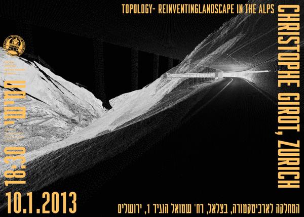 הכניסה חופשיתאדריכל הנוף כריסטוף ז'ירו יתארח במחלקה לארכיטוקטורה, בצלאל. בהרצאתו Topology - Reinventing landscape in the Alps, יעסוק בעבודה פורצת הדרך אותה מוביל ז'ירו בתחום כלי המיפוי, המידול והויזואליזציה של נוף ותשתיות. המחקרים בהם הוא עוסק מגדירים מחדש את כלי העבודה של האדריכל ואפשרויות ההתערבות שלו בסביבה.