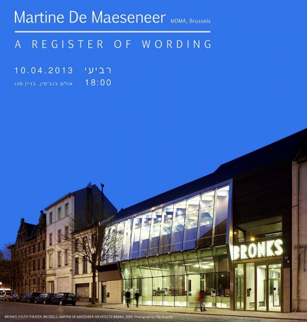 הרצאת אורחת - אדריכלית מרטין דה מאסניר מMDMA, בריסל.
