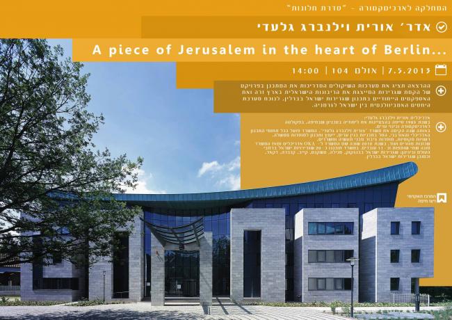 ההרצאה תציג את מערכות השיקולים המדריכות את המתכנן בפרויקט של הקמת שגרירות המייצגת את הריבונות הישראלית בארץ זרה ואת האספקטים הייחודיים בתכנון שגרירות ישראל בברלין, לנוכח מערכת היחסים האמביוולנטית בין ישראל לגרמניה.__img__