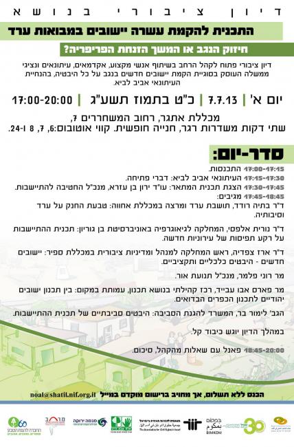 דיון ציבורי בנושא תכנית עשרת הישובים - חיזוק הנגב או הזנחת הפריפריה?