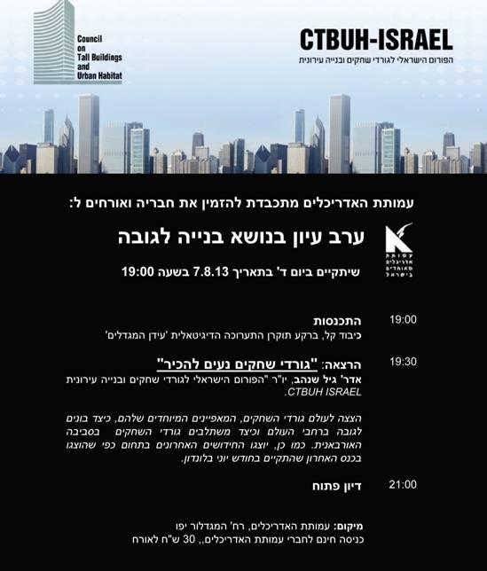 הרצאה מאת אדריכל גיל שנהב יו"ר הפורום הישראלי לגורדי שחקים ובניה עירונית CTBUH ISRAEL.- - - - - - - - - - - - - - - - - - - - - - - - - - - - - - - - - - - - -