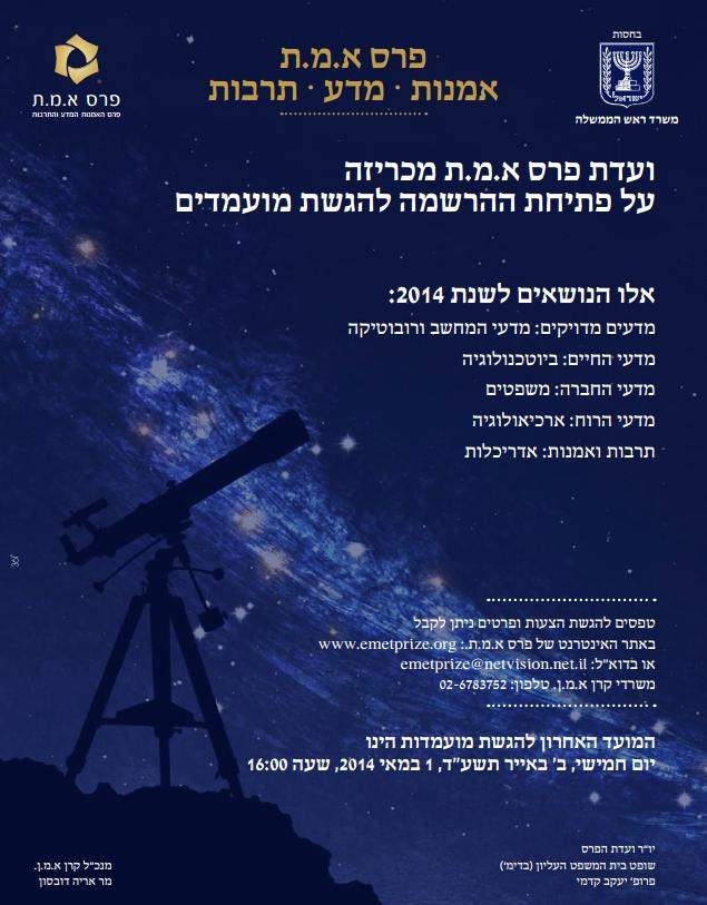 שימו לב, המועד האחרון להגשת המועמדים הוא ה1 במאי 2014.