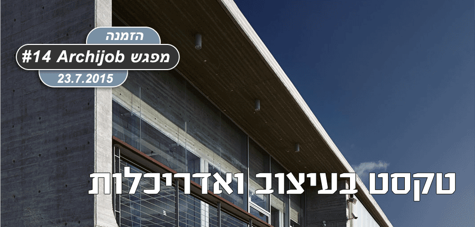 הנכם מוזמנים למפגש ה- 14 של מרכז Archijob , ערב הרצאות קצרות ומרתקות, בו נשמע אדריכלים, מעצבים ומאיירים, שיציגו את זווית הראיה הייחודית שלהם על הקשר בין טקסט, עיצוב ואדריכלות.