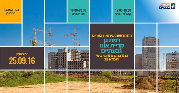 כנס התחדשות עירונית בערים רמת גן קריית אונו וגבעתיים יערך בתאריך 25.9.16 בכפר המכביה.