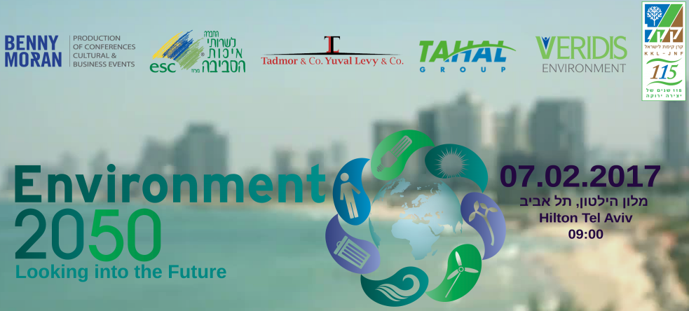 כנס סביבה 2050 יתקיים בתאריך 7/2/17 במלון הילטון, תל אביב החל מהשעה 09:00