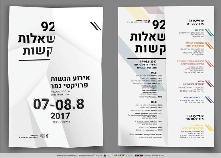 הפקולטה לארכיטקטורה ובינוי ערים בטכניון, מתכבדת להזמינכם לארוע הגשות פרויקטי גמר ופתיחת תערוכת הבוגרים 2017.