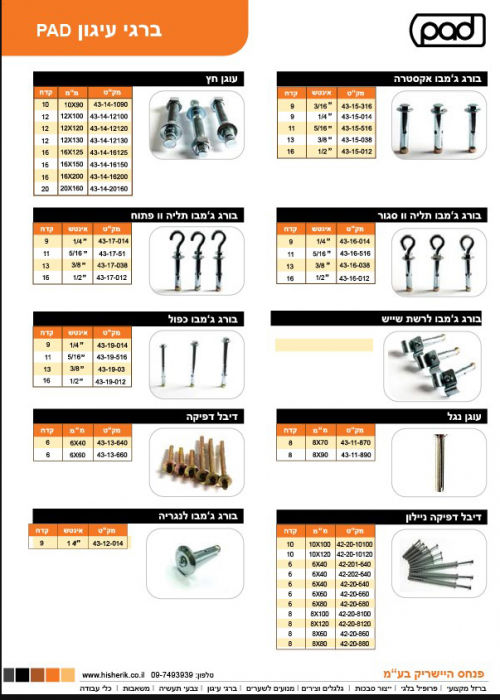 כמו כל מוצרי מותג הבית PAD, גם העוגנים, עוגני הג'מבו,עוגני החץ הברגים והדיבלים מיוצרים בסטנדרט של פנחס היישריק, לנוחות תפעול ועבודה נקייה ויעילה במיוחד.