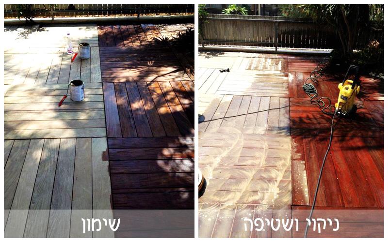 בהתליך חידוש הדק- העץ עובר ניקוי מיוחד באמצעות מכונת פוליש וחומר הנקרא קלינר, שטיפה חזקה עם גרניק ולאחר הייבוש הדק עובר שימון טבעי או שימון עם צבע.