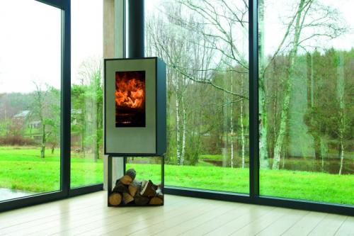 •קמין הפועל בשיטת בעירה יחודית WOODBOX.