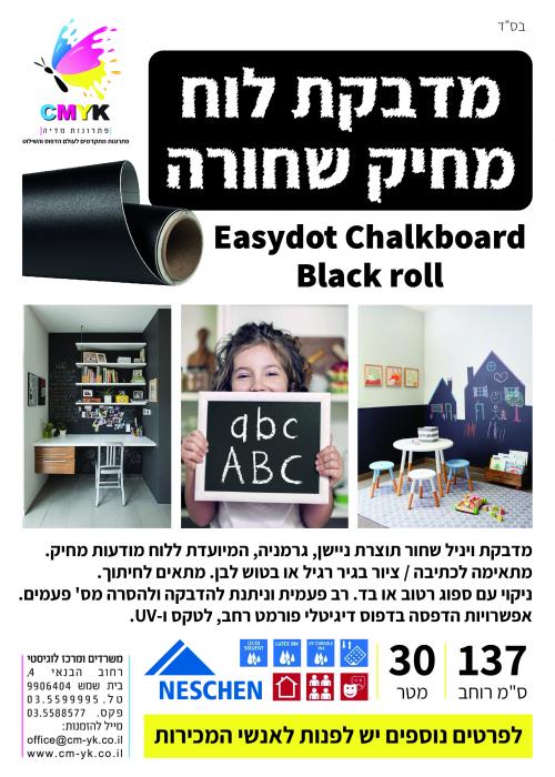מדבקת לוח גיר שחור-מט, נדבקת לכל משטח חלק.