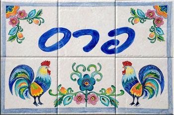 שלט מאריחי קרמיקה מצויירים ביד.