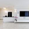 זוג מבוגר ביקש להפסיק להתגורר בשתי דירות נפרדות ולעבור לדירה אחת משותפת, כדי להתחיל דף חדש בפרק ב'. הם ביקשו בית נקי ופונקציונאלי ללא קישוטים מיותרים וכזה שיתאים להם לתקופת זמן ארוכה. לדיירים היה חשוב מאוד לשמור על עיצוב מינימליסטי ומדוייק ולכן כל קירות הדירה נצבעו באותו הגוון והרצפה חופתה בריצוף איכותי ומבריק תוצרת איטליה בגודל 80/80 ס"מ בגוון בהיר. לבעלת הבית ישנה רגישות גבוהה לתאורה ישירה ולכן היה צורך למצוא פתרונות יצירתיים ולהשתמש באופן מושכל בחומרי החיפוי כדי שהבית יהיה מספיק מואר. הגוונים הבהירים שנבחרו, יחד עם תכנון מוקפד של תאורה עקיפה כמעט בכל החלל, אפשרו רמת תאורה גבוהה, פונקציונאלית ונעימה שמתאימה גם עבורה וגם עבור שאר המבקרים הבית.
