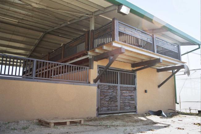 פרגולה ללא עמודים המשקיפה לחצר אימון הסוסים