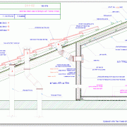 18.03.08פרט חתך לגג עשוי פנל מבודד בו מותקנת כיפת תאורה או איוורור. בחתך נראים המרישים אליהם מחוברים לוחות הפנל המבודד. כיפת התאורה מותקנת עם חיפוי פח מיוחד ומוברגת אל הקונסטרוקציה. לוח פח מחפה את הפנל המבודד העליון ונמשך עד לרכס למניעת כניסת מים מתחת לאלמנט החיפוי של הכיפה. ניתן לראות פרט זה גם ב אקסונומטריה -